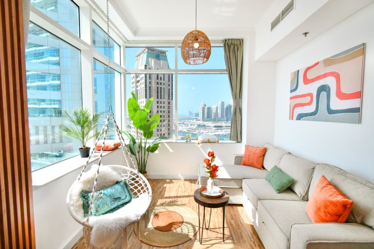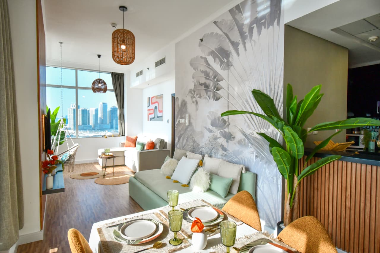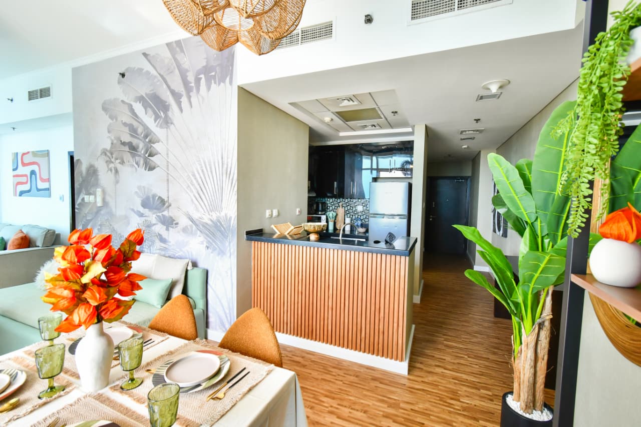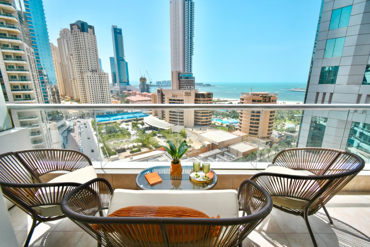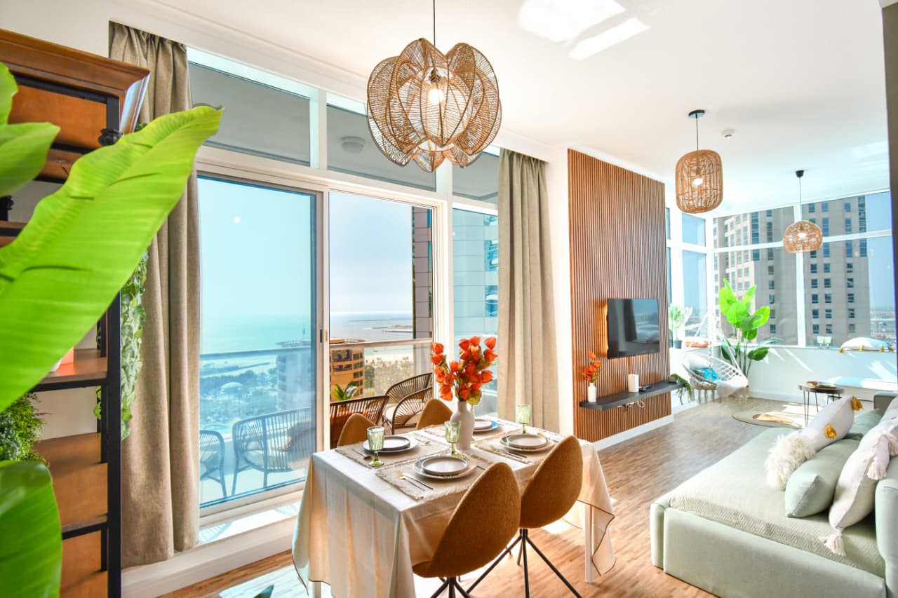 A bright one bedroom apartment presented by HEP Stays and prepared to deliver a smooth, comfortable and practical guest experience. The apartment offers approximately 719 point 68 square feet on a high floor with a clear sea view and natural light throughout the space. The unit is furnished in a simple contemporary style suitable for both short and extended stays.