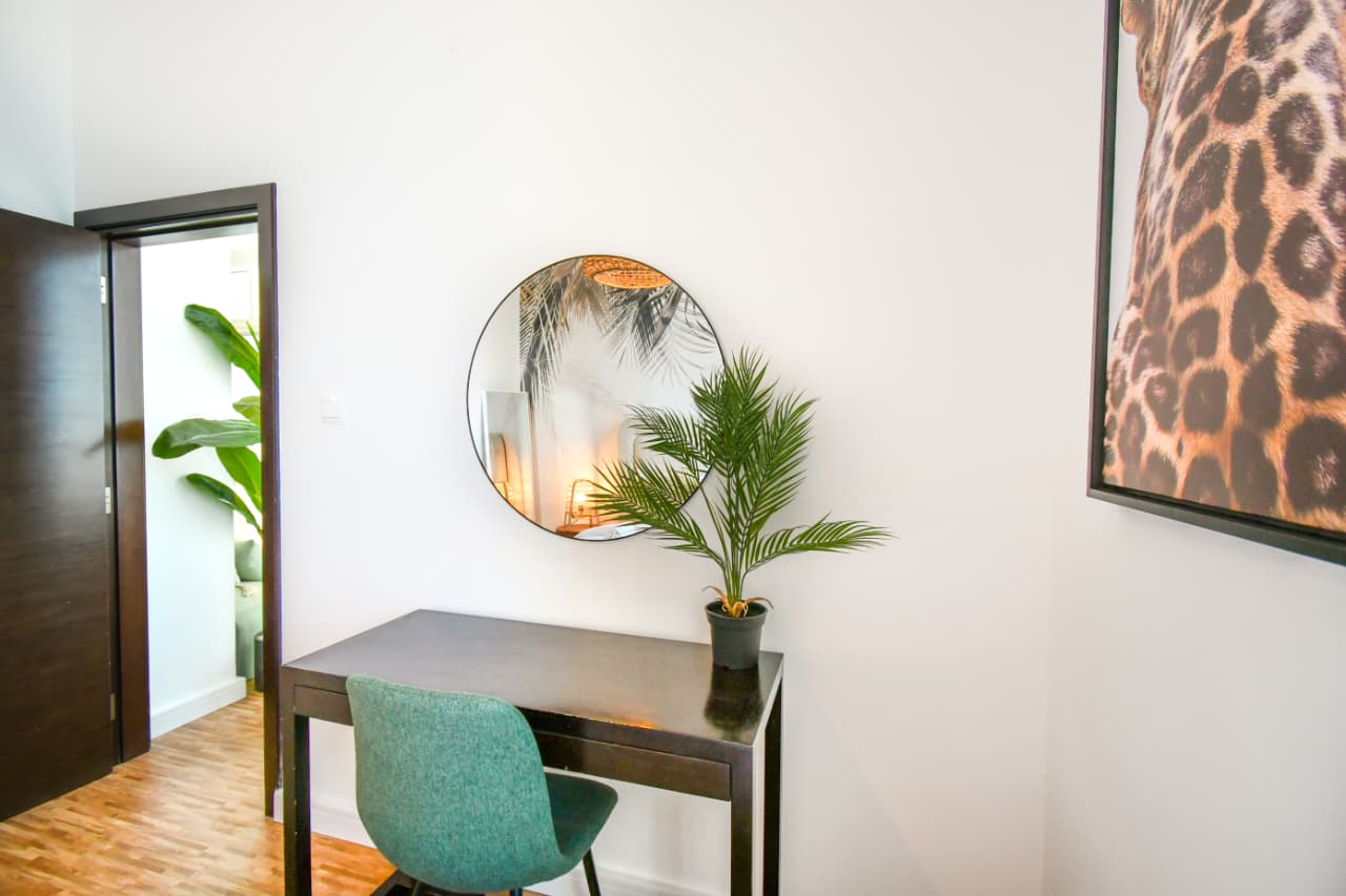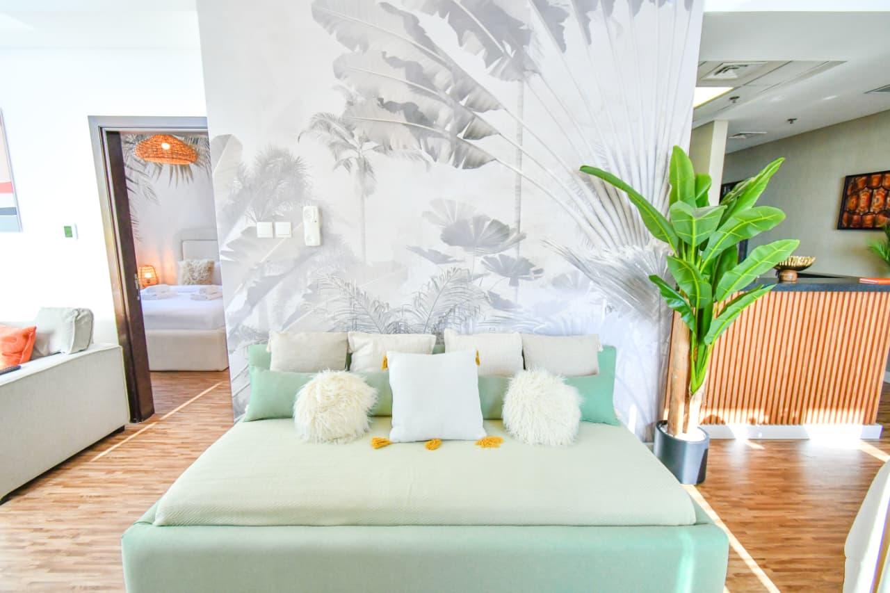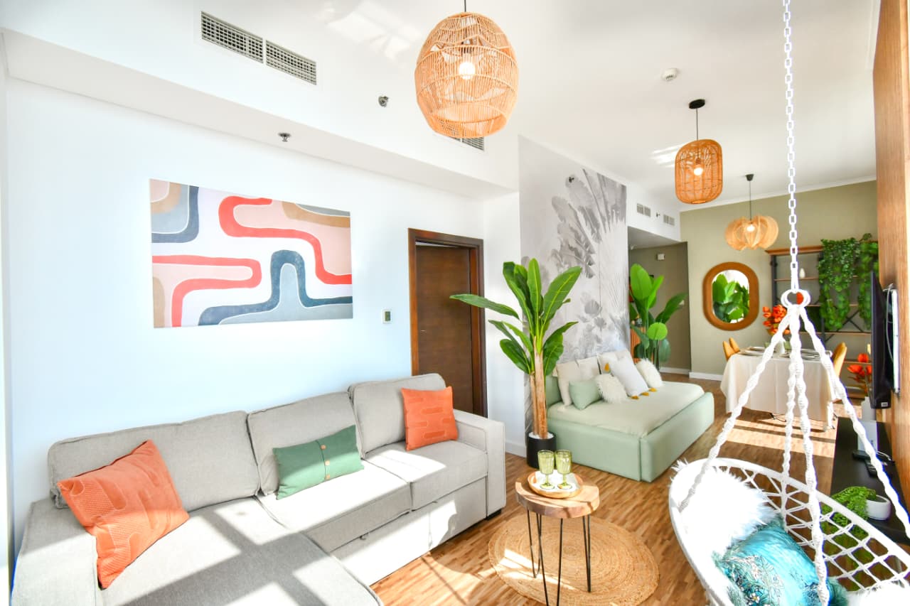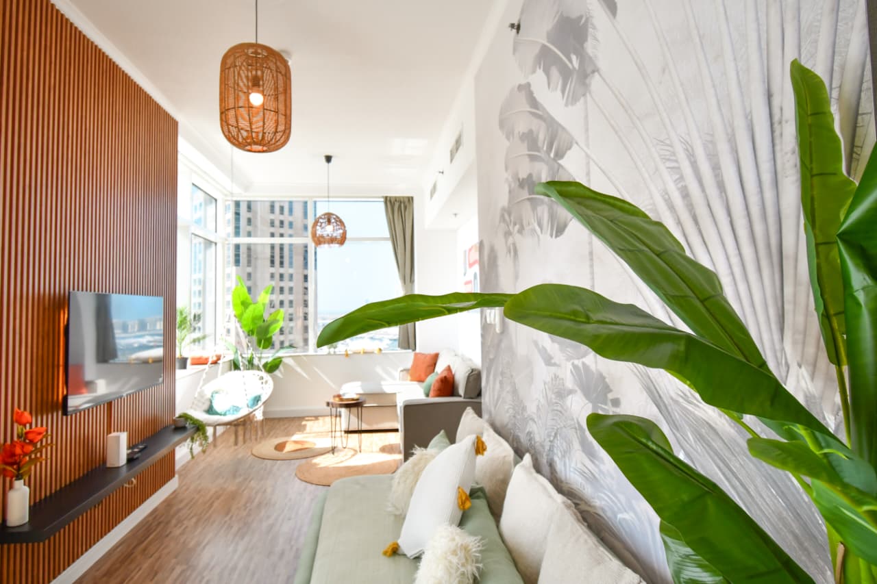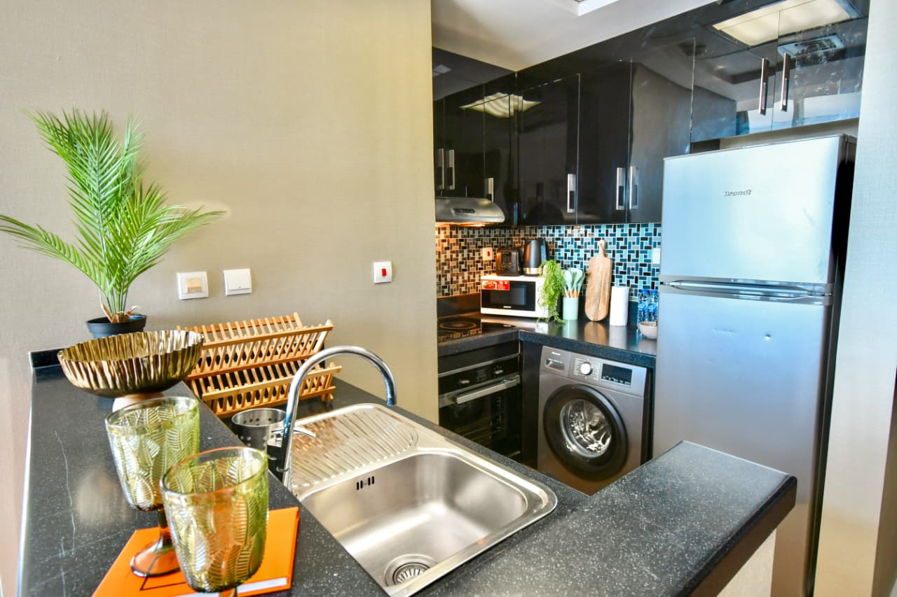 A bright one bedroom apartment presented by HEP Stays and prepared to deliver a smooth, comfortable and practical guest experience. The apartment offers approximately 719 point 68 square feet on a high floor with a clear sea view and natural light throughout the space. The unit is furnished in a simple contemporary style suitable for both short and extended stays.